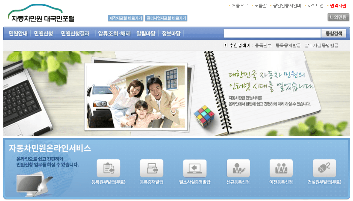자동차 양도증명서는 자동차민원 대국민포털 홈페이지에서 손쉽게 다운받을 수 있습니다. 우선 자동차민원 대국민포털 홈페이지에 접속해 주세요.